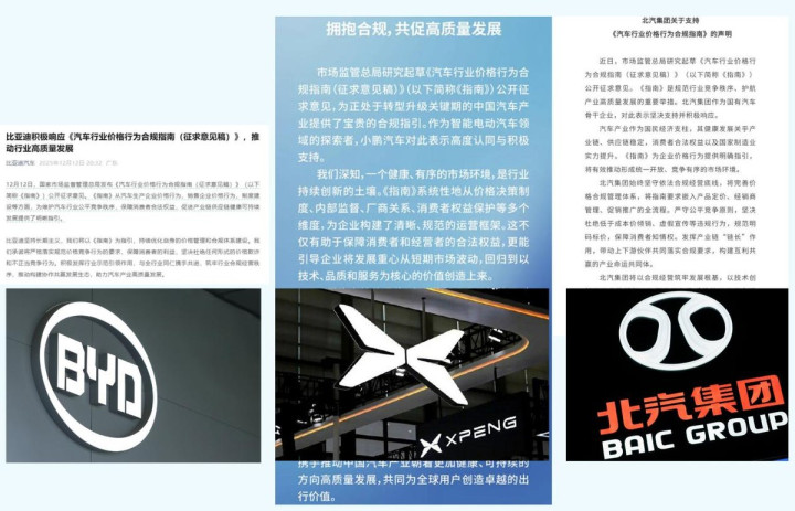 好消息是,在《指南》发布不久后,比亚迪、北汽集团、小鹏汽车等企业就迅速公开表态支持,并承诺将优化价格管理体系,杜绝价格欺诈和不正当竞争。那这也就表明,头部企业期望结束无序竞争,会将重心回归到产品、技术和服务的良性竞争上来。